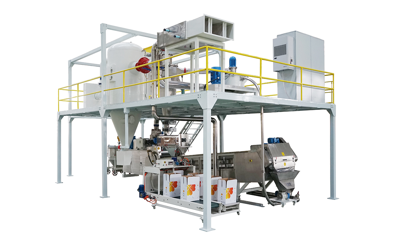 型號 產量(kg/h) 占地面積(sq.m.) 操作工人 噪音、污染